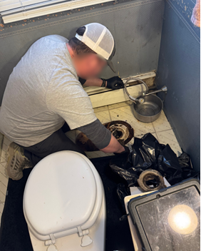 - Toilet: Excessive toilet paper, wipes, foreign objects